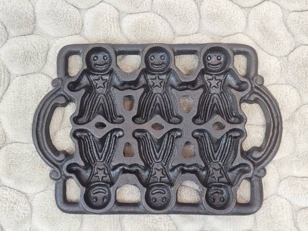 Better than new cuz you don't have to worry about factory seasoning failure - this mold has been stripped down to bare iron, lead tested, and had 4 layers of seasoning baked on. It's ready and waiting to impress even the most discriminating palate. NO CRACKS, WARPS, OR WOBBLES