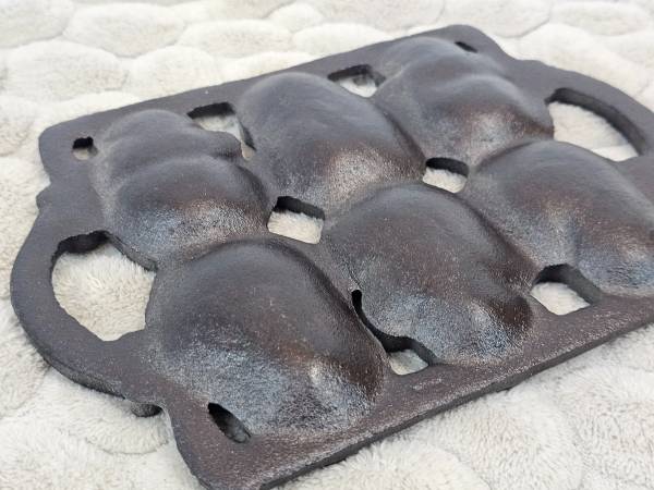 Better than new cuz you don't have to worry about factory seasoning failure - these molds have been stripped down to bare iron, lead tested, and had 4 layers of seasoning baked on. They're ready and waiting to impress even the most discriminating palate. NO CRACKS, WARPS, OR WOBBLES