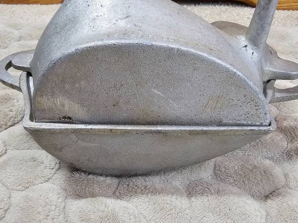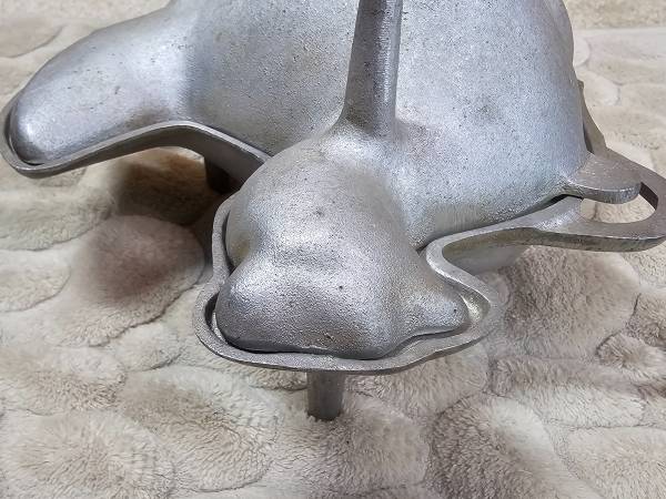 Now is your chance to own a piece of Martha by Mail history. This charming 2 part mold was made in the USA exclusively for the Martha by Mail catalog in the 1990s, and was available for only a few years. The heavy cast aluminum cake mold bakes a 3 dimensional cake appropriate for any occasion throughout the year. It’s beautifully designed with lovely detailing on the head and the feathers on the body. This is a relatively hard to come by piece that you'll want to add to your collection. Not only can you bake a lovely springtime dessert with this mold, but it can be displayed as two pieces with the open sides facing out so the lovely detailing shows. For best showcasing, could use a good polish, but overall, in really nice vintage condition!