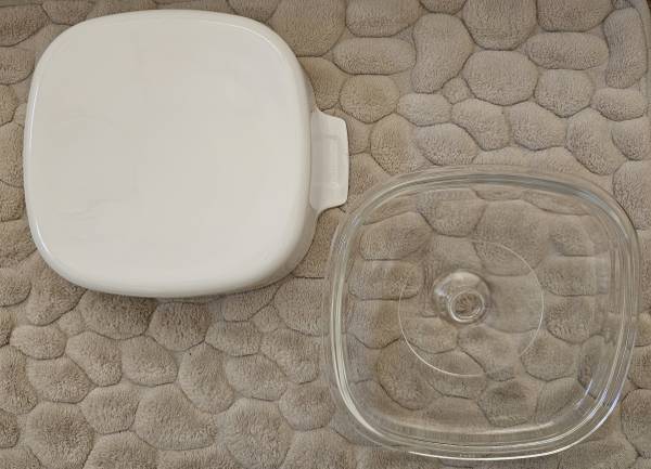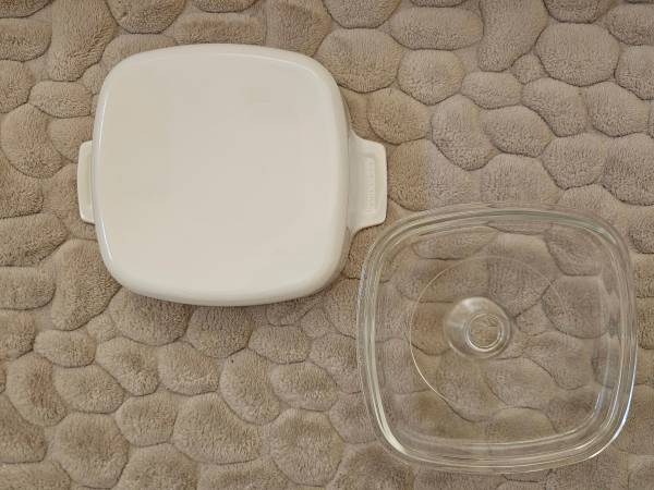 Pyroceram, a glass-ceramic heated material was originally developed by Corning in the 1950's to be used in rocket nose cones. Further development to kitchen products resulted in CorningWare cookware, which made its debut in 1958. It was hailed as a new space-age cookware material virtually impervious to temperature extremes. Originally targeted toward working women who wanted to cook, set an attractive table, and get out of the kitchen fast — with as little clean up as possible, this durable break and chip resistant glass cookware and bakeware is as relevant today as it was 50 years ago. Safe for use in the microwave, broiler, oven, stovetop, refrigerator, freezer and as a beautiful tabletop serving dish.