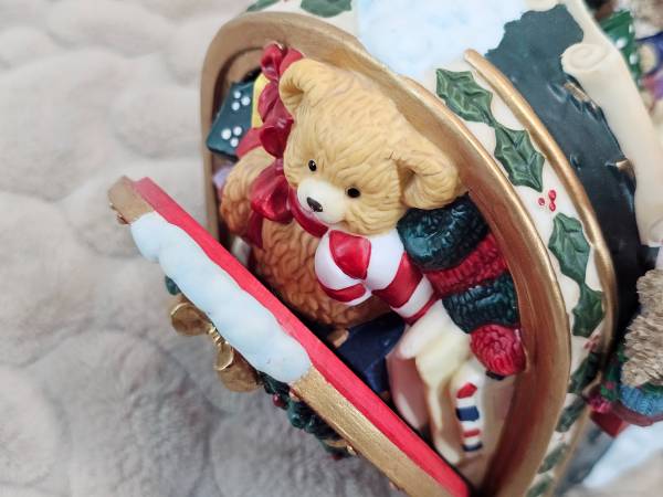 A peek into a holiday post box! This vintage music box shows adorable mice in the holiday spirit - in a pile of packages with a decorated Christmas tree. The box is overflowing showing a teddy bear and candy canes. It plays We Wish You a Merry Christmas as the inside of the post box turns and the little mouse on the front goes back and forth with her candy cane! "C. KAO" and "Made In China" stamped on the bottom. Whimsical and festive - a must have for a music box collector or holiday enthusiast! Excellent vintage condition.