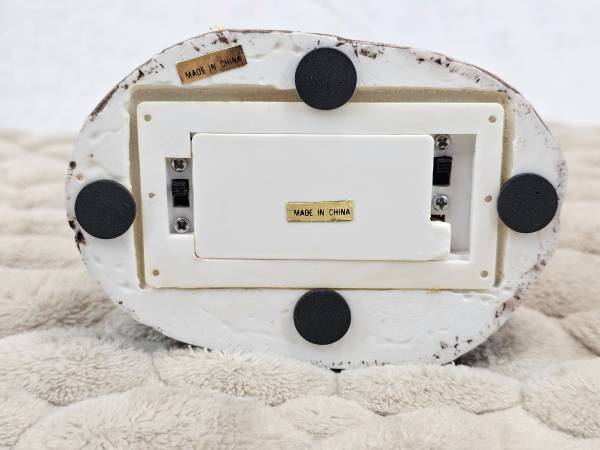 Bring some vintage charm to your holiday décor with this musical Santa Clause figurine. Featuring a matte finish and flashing red lights, this 6 1/2" poly-resin Santa is sure to be a conversation starter...or maybe even a sing-a-long. It plays a medley of well known Christmas carols - "Jingle Bells", "Santa Clause Is Coming To Town", and "We Wish You A Merry Christmas". Perfect for collectors, this original piece from the mid-20th century is in excellent condition and ready to add some festive cheer to your home. With its unique mix of materials, lights, and musical features, this Santa is sure to be a treasured addition to your holiday collection.