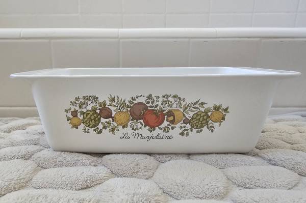 This loaf pan has the hologram stamp which makes it 1972-1979 vintage. It is in excellent vintage used condition.