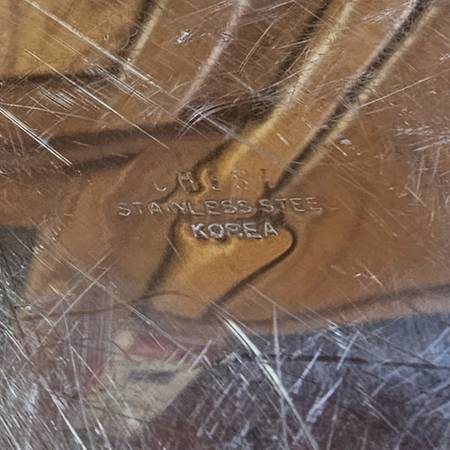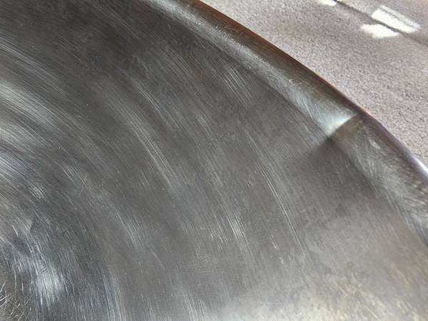 In really good vintage condition - couple minor creases in rim and the typical scratches found in used stainless steel bowls