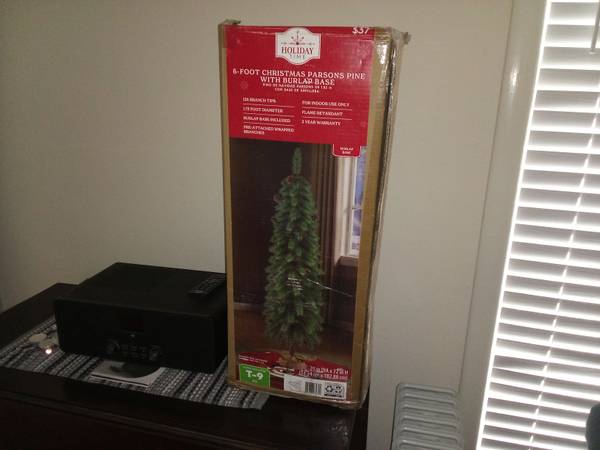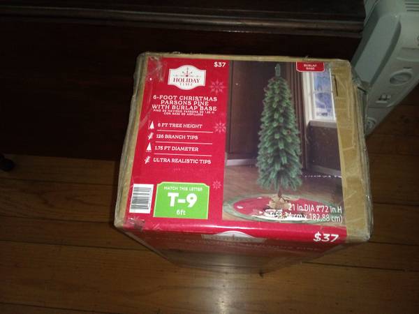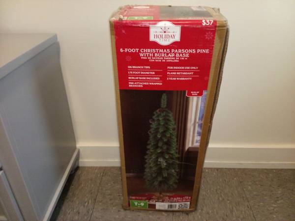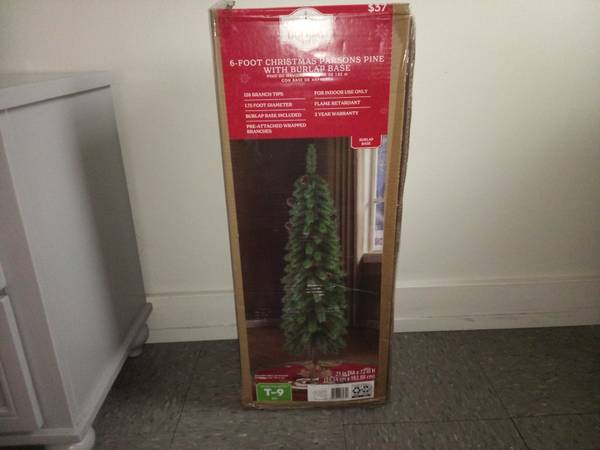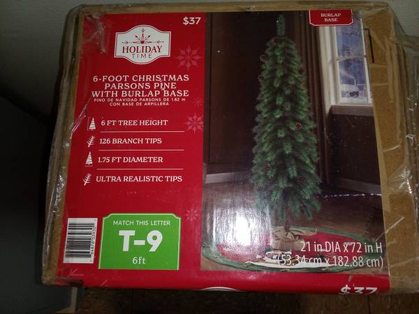 Model T-9 72" x 21" Christmas Tree Includes burlap base. Lights not included. Never opened box. Price is firm. Delivery for extra charge.