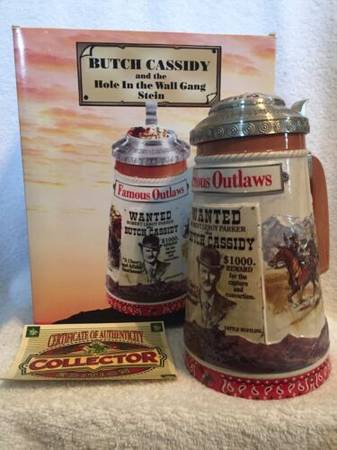 EACH SOLD SEPARATELY Ask for mailing options: member of Pay Pal ( I accept visa payments on Pay Pal) 1. PIC #1 / $35 BUTCH CASSIDY and the Hole in Wall Gang Stein CS522 #04725 Anheuser-Bush, Inc St....