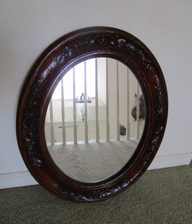 DECORATIVE MIRROR Can be hung both ways SIZE: 22 x 26 COLORS: DARK BROWN WOOD FRAME CASH ONLY I will meet you at the Safeway: 9045 WoodCreek Oaks Blvd SEND TIME & DAY ONLINE CLICK ON: "MORE AD'S...