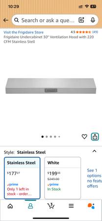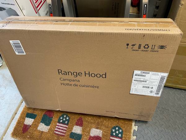 Frigidaire 30” Range Hood Vent, NEW in Box (NIB). Stainless Steel with 220CFM vent fan and lights built in. Sells on Amazon for $199 - $249 New! Yours for $155. Reference:...