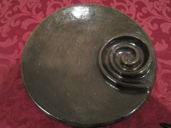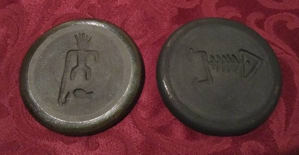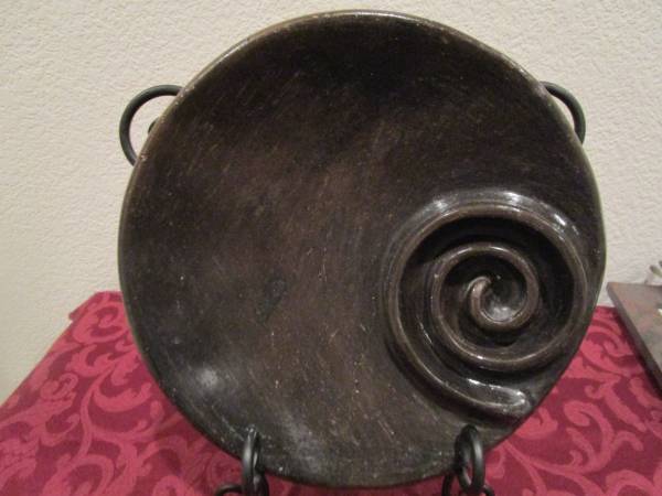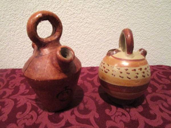 HANDMADE POTTERY: The pottery on the left has leather surrounding it