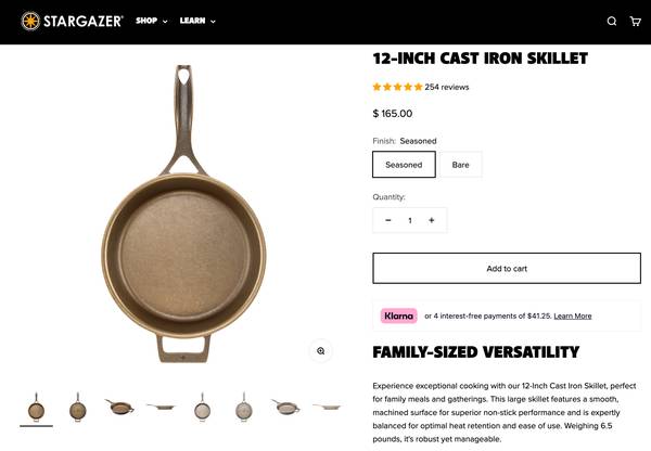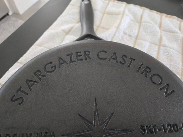 Brand New StarGazer 12-Inch Cast Iron Skillet, Made in USA. Price: $130 Email, Call or Text. I'm in Roseville near Fiddyment and Blue Oak Blvd.