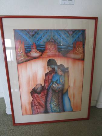 EACH SOLD SEPARATELY 1. PIC#1. / $85 AMADO PENA FRAMED LITHOGRAPH SIZE: 40 in TALL x 31 1/2 WIDE FRAME: RED 2. PIC# 2 / $28 HAND MADE SUN: Very Heavy Made by M BACH 12 1/2 WIDE 3. PIC#3 / $8 WESTERN...