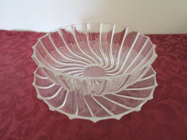 SERVING PLATTERS & VINTAGE GLASS ITEMS: EACH SOLD SEPARATELY Ask for mailing options: Pay Pal member 1. PIC's #1,2,3 / $20 CRYSTAL CANDY DISH 2. PIC'S # 4 / $18 Vintage Serving Platter: approx....