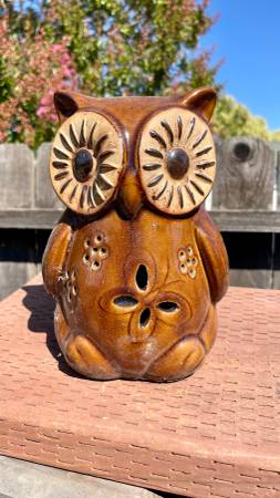 $12. Brown Clay Owl. 8 3/4 Tall x 5” at Base.