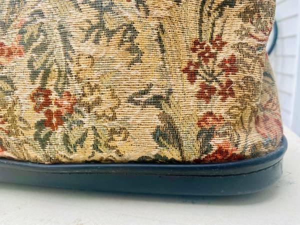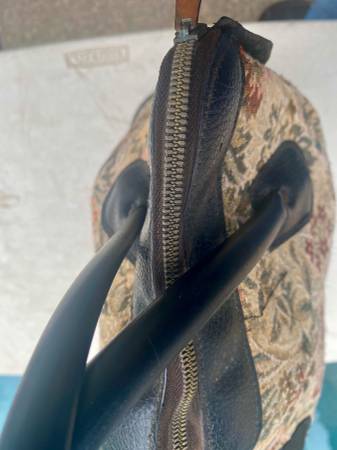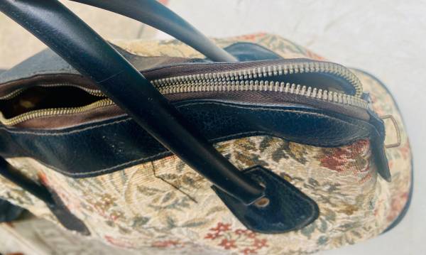 BEAUTIFUL RARE AUTHENTIC TAPESTRY CARPET BAG. 15" TALL WITHOUT THE HANDLES, 20" TALL WITH THE HANDLES, 14" LONG & 8" WIDE. IN BEAUTIFUL CONDITION. CLARK & COATS ZIPPER IS IN EXCELLENT WORKING CONDITION, LEATHER AND STITCHING IS IN EXCELLENT CONDITION, FABRIC IS ALSO IN EXCELLENT CONDITION. NO TEARS, CRACKS, STAINS, PRETTY MUCH FLAWLESS. THE INTERIOR HAS SOME WEAR.SEE PHOTOS. $70
