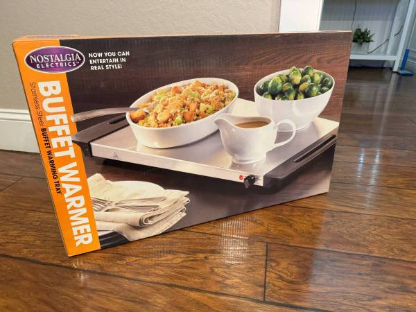 Nostalgia1-Quart 3-Station Warming Tray Brand new Stainless steel base warming tray Adjustable heat control Stay-cool side handles Pick up