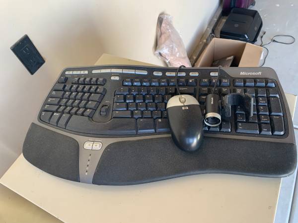$10 - Microsoft ergonomic keyboard ... I'll throw in an HP regular mouse for free $10 - Monster RCA cable for powered subwoofer or other speaker components $10 - HD Web Cam and Microphone - high...