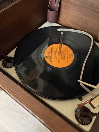 Mid Century Modern MCM Turns on Noticeable wear Currently does not have a needle. I purchased a needle and will include it, needs to be installed. (see last photo) 38"L x 15"W x 27"H