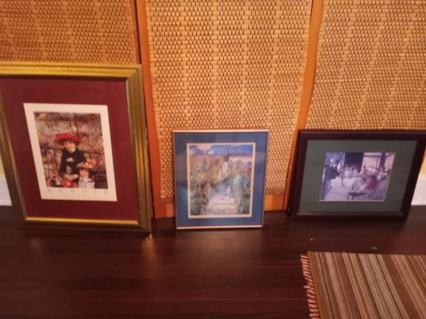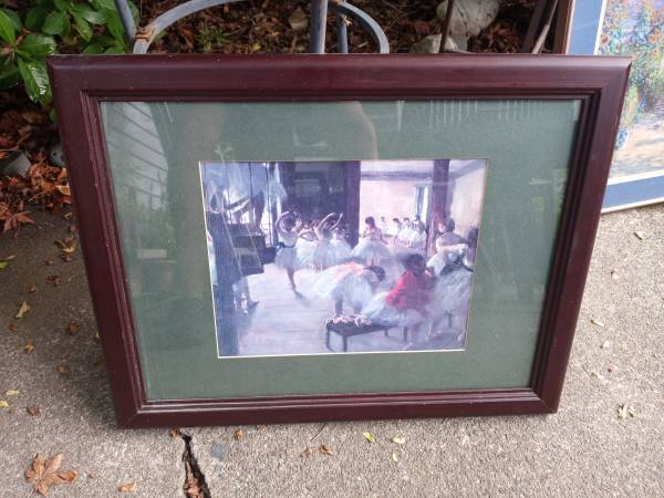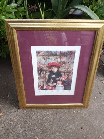 Beautiful framed art. Degas "Dance Class" 14 x18 Renoir " 2 sisters on Terrance " 24 x20, Monet "The Garden at Vetheuil "15 x 13. All in great condition. .All 3 for 45.00 Call or text mike