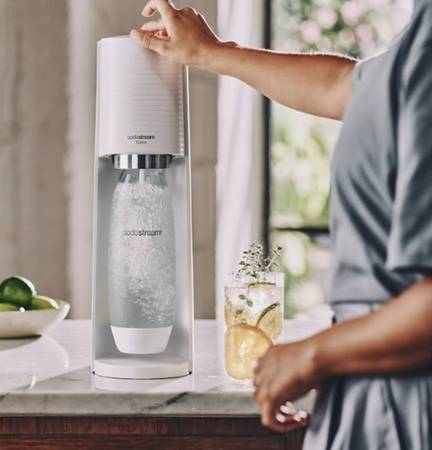 Sodastream TERRA White sparkling water maker. Machine only. Beautiful simple design. For use with the PINK Quick connect CO2 cylinder. Serious inquires only Thank you for looking