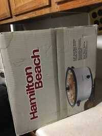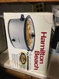 6 qt oval slow cooker for sale. By Hamilton Beach Removable stoneware Keep warm setting Lid latch strap included. Recepies include Email or text for more information and offer the price.