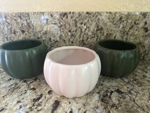 For sale is a set of 3 ceramic pumpkins. These were purchased new and are in great condition. They would be great as centerpieces for fall / Thanksgiving. $10