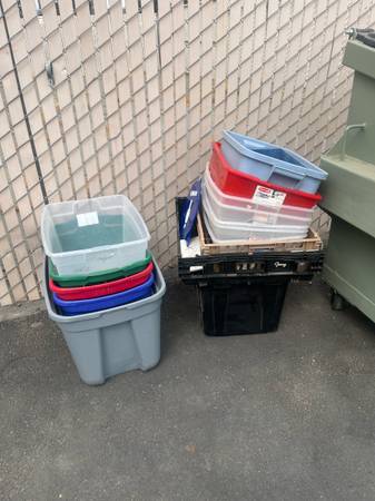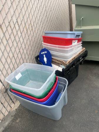 $2 each Different sizes - no lids Plastic storage totes Please call or text Krystle 9 am -9 pm Sterilite moving bin bins packing