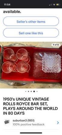 Vintage Rolls Royce Bar Set Convertible Car Liquor Shot Glasses Barware Set of 5 *Rolls Royce Convertible *Four shot glasses -Decanter is not available-Priced accordingly. Plays Around the World in...