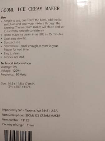 500 ML Ice Cream Maker green and white. Cash and local pick up only .