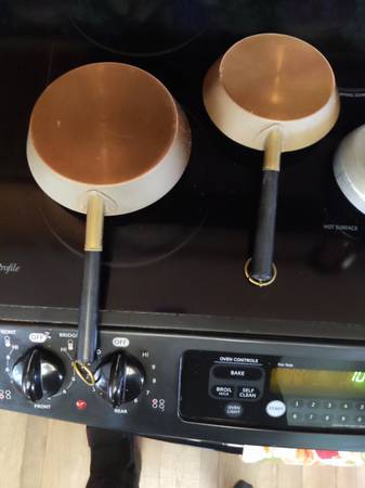 4 Vintage Skillets 2 Cast Iron 2 Copper The cast iron are 4" and 6". The decorative copper are 5" and 6". Call or text