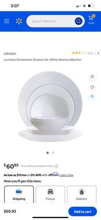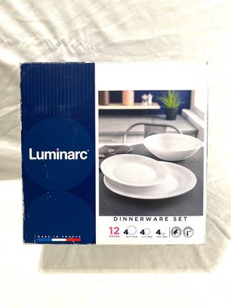 Brand new in the box made in France (Luminarc) 12 piece dinnerware serving set. Retails for $60.