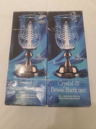 Crystal & Brass Hurricane holiday theme candle holders - Set of 2