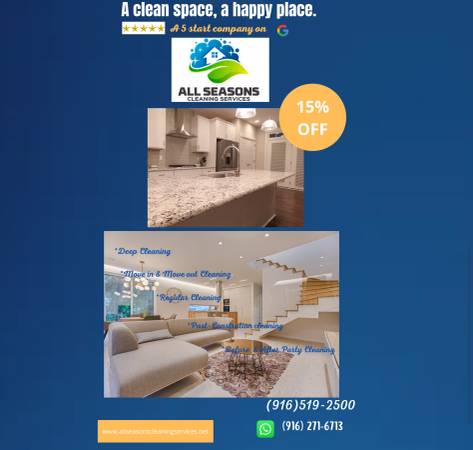 Welcome at All Seasons Cleaning Services, thank you for contacting us. We'll be happy to take care of your cleaning needs so you can focus on other important tasks. how hard it is to take care of the home, taking care of the family and work, and I think it's very important to have someone kind, responsable and you most important that you can trust, that is willing to take care of your home like we take care of us