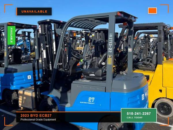 Picture 17: 2023 BYD ECB27 Capacity: 6,000 lbs Fuel: Electric Subcategory: Electric 4 Wheel Sit Down Mast Type: Three Stage Mast Height: 86 / 187 in Side Shifter: Yes Hours: 1 Condition: New Stock: 102714-22 BEST PUT TOGETHER FULL INTEGRATED LITHIUM TRUCK ON THE MARKET. IT WILL RUN 10 HOURS WITH A SINGLE DOUBLE STRAIGHT AND CHARGE IN 90 MINUTES.