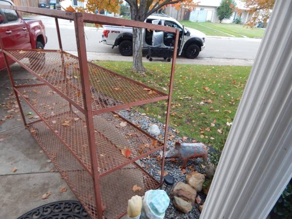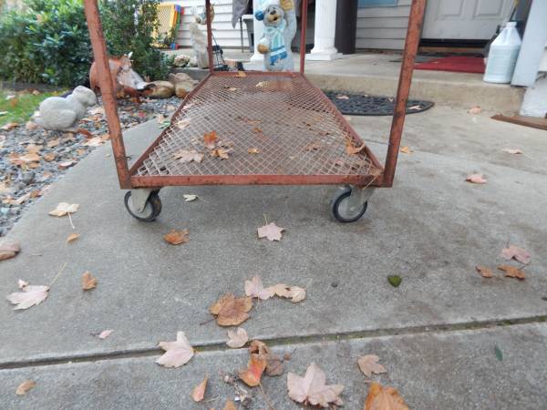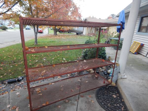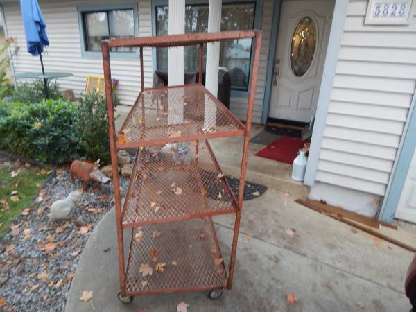 This is a very heavy-duty, sturdy roll around 4 shelf unit. It is not rusty, it's the paint color. It is 69" wide and 23.5" deep.