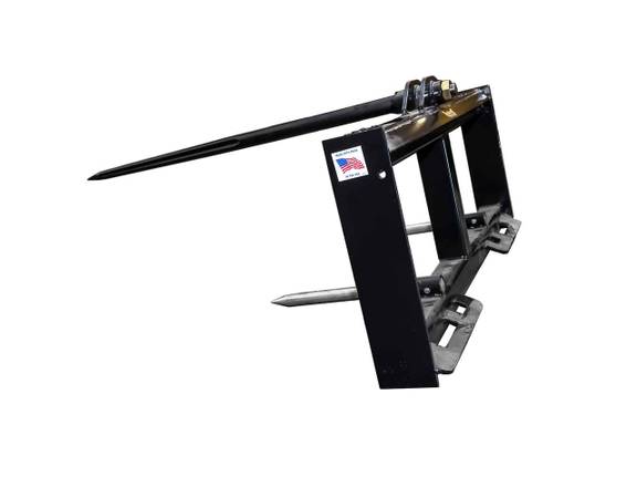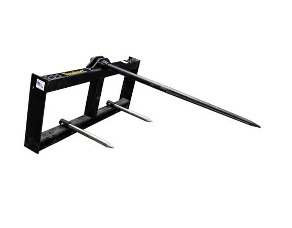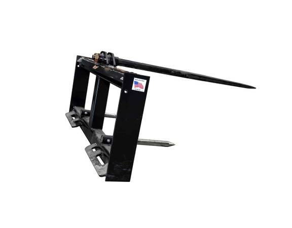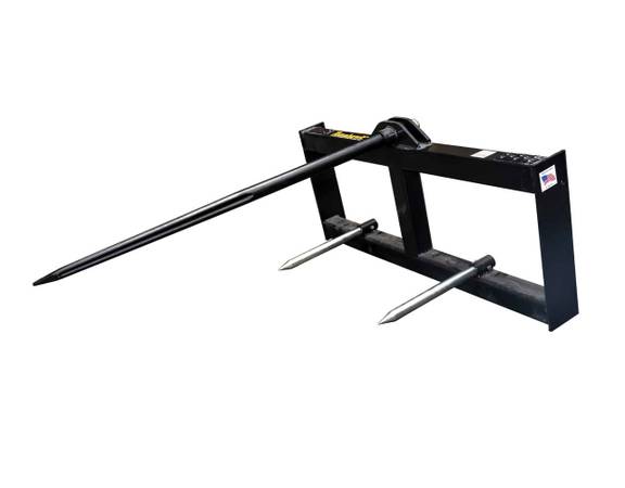 Tomahawk Round Bale Hay Spear Frame. The long removable main spear and two removable bottom stabilizing spears allow your skid steer to easily pick up large round bales. The sturdy tubular steel frame is built for years of use. We think you’ll find the Tomahawk Round Bale Hay Spear Frame an indispensable attachment for your skid steer!