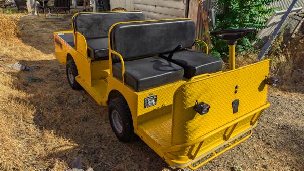 Taylor-Dunn cart made in 2011. Dual Bluetooth 100Ah 48v Lithium Iron Phosphate (LiFePO4) batteries were installed last year, bringing the capacity up to 21kWh or about triple the stock lead acid. You could probably drive this all week without charging. Shortly after installing the new batteries the motor failed due to a defect in the brush holder so there's only a couple hours on the new batteries. Brand new motor is installed. Seats 4, but the rear seats fold down to give way for more bed space. Proceeds go to benefit Sacramento Mandarins Drum Corps https://www.mandarins.org/