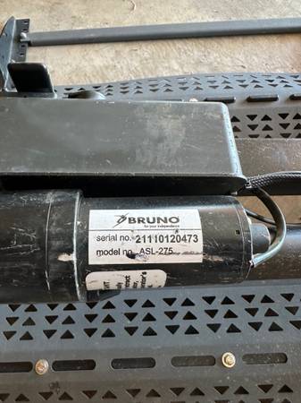 this is a rarely used Bruno ASL-275 wheelchair car hitch carrier works great need two people to lift to install in hitch and an expert to wire it up to your brakes and plugs already mounted on your vehicle. Paid $3000 new