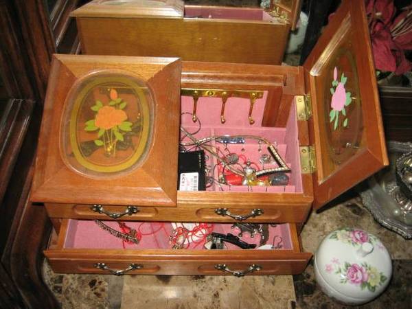 Jewelry box ask for price new ring in box $10/each yellow jade pendant $50 green jade necklace $200