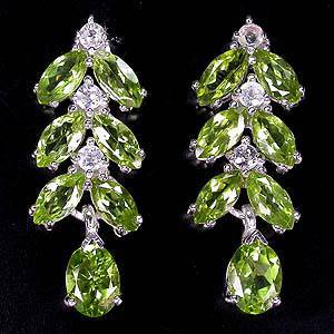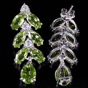 Big Peridot Rich Green Top Luxury/White Sapphire 46.00 X 17.00 MM Earrings, 14K White Gold Plated Over 925 So It's Care Free...