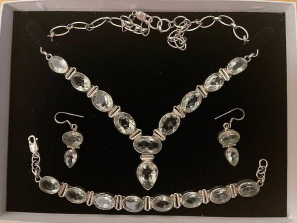 Very Elegant... Nice Stunning Green Amethyst Stones, And You Get The Necklace/Bracelet/Earrings And The Genuine/Green Amethyst In Done In Sterling Silver... $880