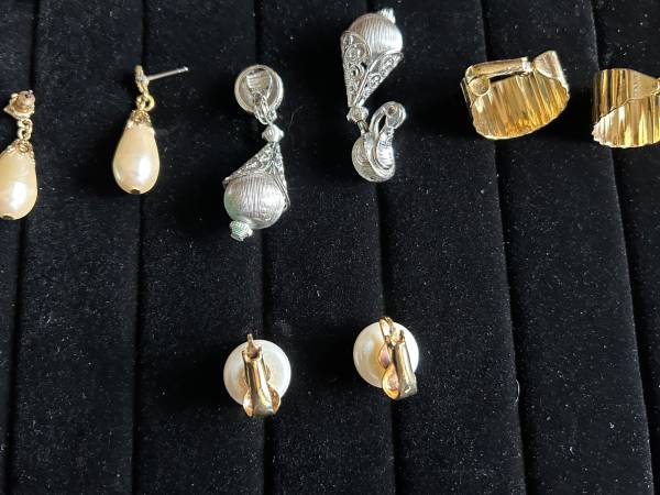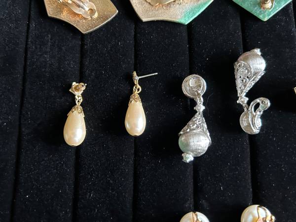 VINTAGE COSTUME EARRINGS PEARL BAKELITE MONET. $60
