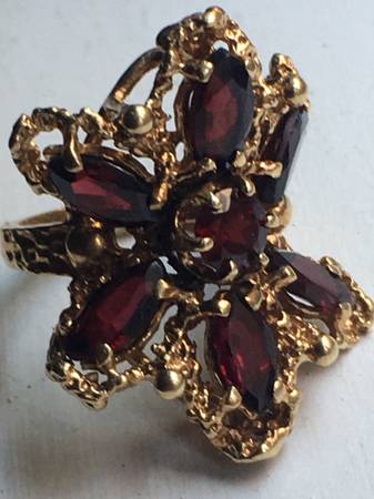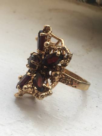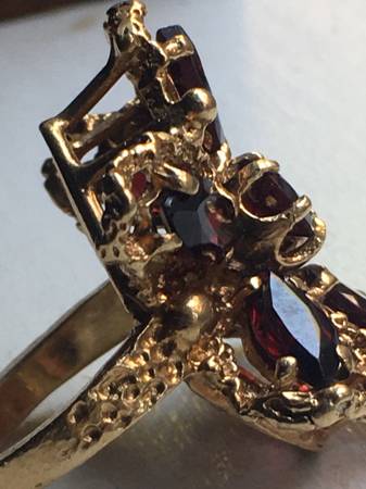Size 5.5 this amazing one-of-a-kind piece weighs over 9 g! Stunning blood red garnets. One of a kind ring. $550. East Sacramento