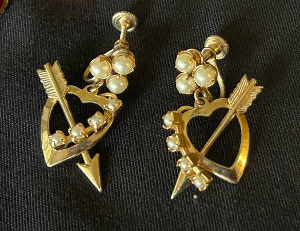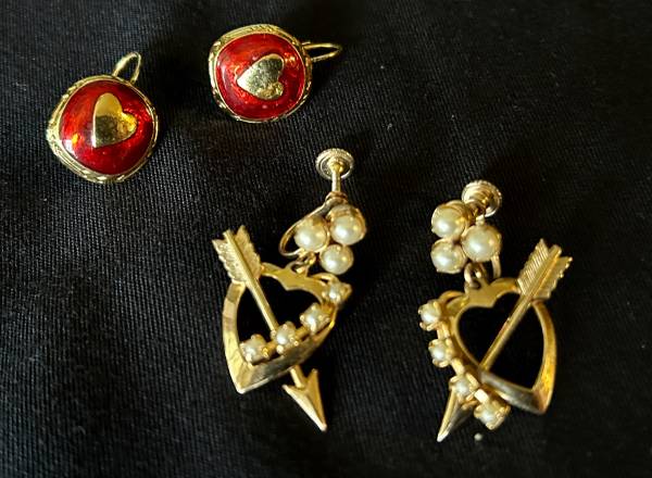 2 PAIRS VINTAGE VALENTINE HEART EARRINGS BEEBI. $30
