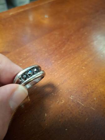 Silver ring with three black diamonds. Originally sold for ~$100 (~$140 adjusted for inflation) Some wear