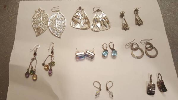 Used 9 pairs Earrings Silver 925 Price $100 Or Best Offer Total 58.3 grams