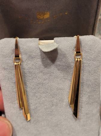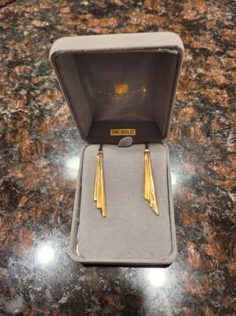 Vintage Dangle Earrings 14k Gold Modernist Geometric Tassel