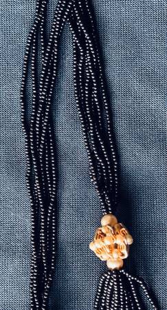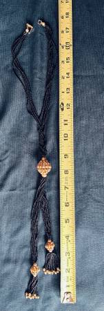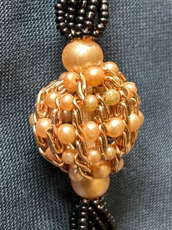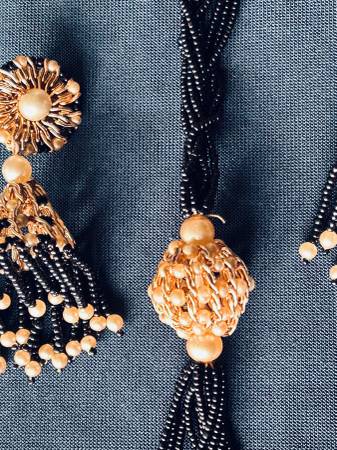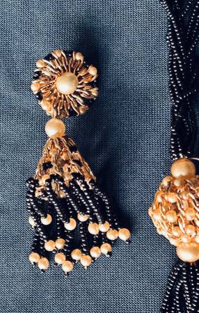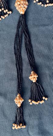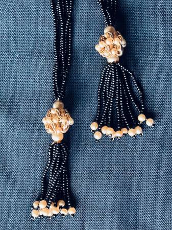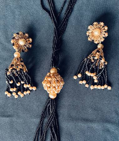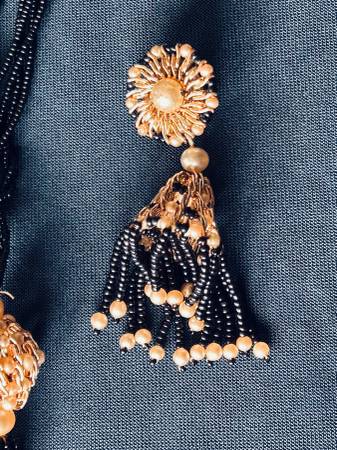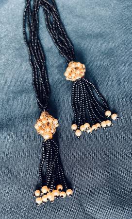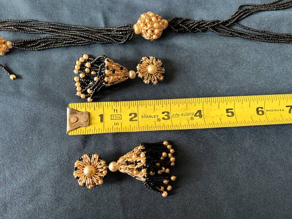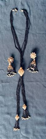 Seed Bead & Pearl Tassel Necklace Clip-On Dangle Earrings Set Black. Excellent Condition. $40