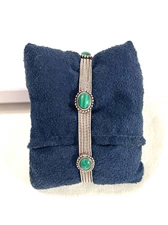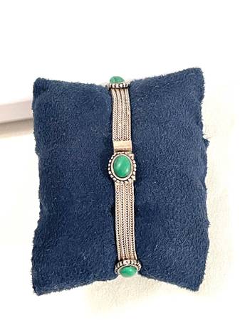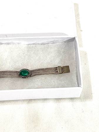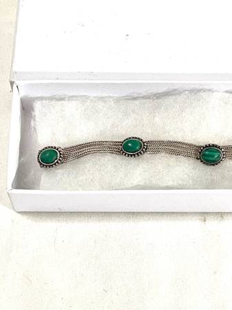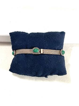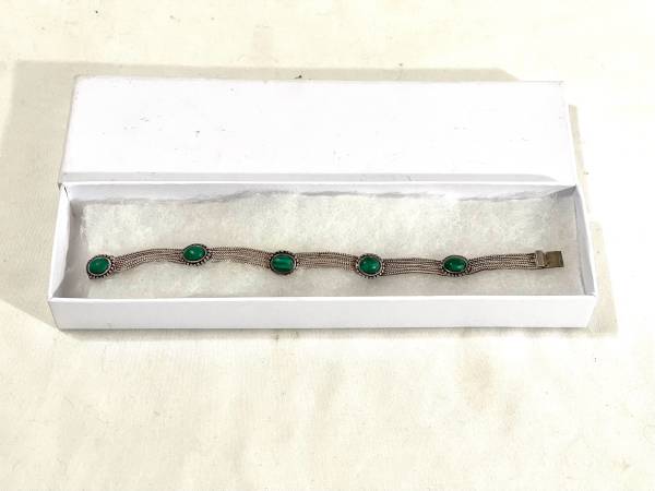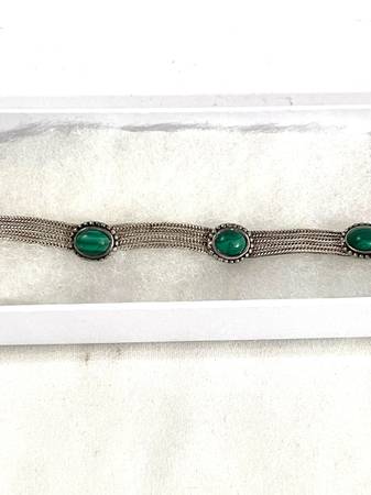 Antique great condition .925 chain-link 7-1/2” silver bracelet with (Green Malachite) stones. Valued over $250.