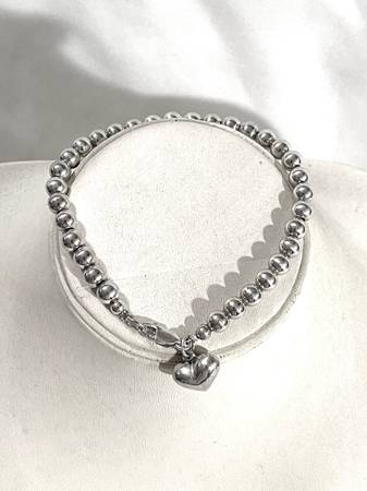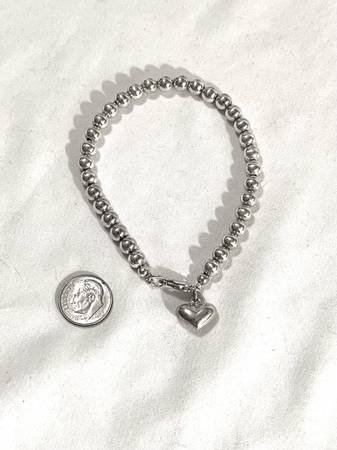 Brand new from Italy 7” .925 silver bead, strand bracelet with silver heart pendant