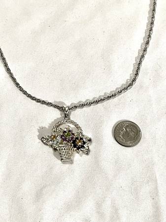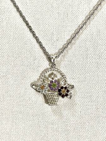 Brand new, one of a kind .925 silver basket pendant with (CZ diamonds, Peridot, Citrine & amethyst) gemstones with 18 inch silver necklace